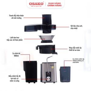 Máy ép trái cây OSAKO EP-606 với phần lưỡi ép inox SUS 304  và 2 chế độ ép, máy cho khả năng ép được hầu hết các loại trái cây từ mềm cho đến cứng, để bạn có được danh sách các loại nước ép thật đa dạng, tốt cho sức khỏe và an toàn.